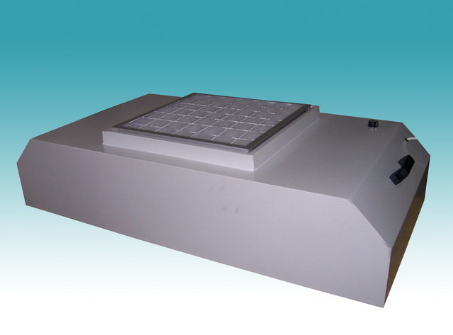 FFU設(shè)有初、高效兩級過濾網(wǎng)。風(fēng)機(jī)從FFU頂部將空氣吸入并經(jīng)初、高效過濾器過濾,過濾后的潔凈空氣在整個出風(fēng)面以0.45M/S±20%的風(fēng)速勻速送出。