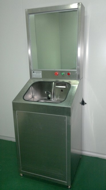 全自動洗手烘干機(jī)為進(jìn)入潔凈室之前必要?jiǎng)幼?。主要功能為提供潔凈水,確保將作業(yè)人員雙手清洗潔凈;由經(jīng)過高效濾網(wǎng)過濾、環(huán)保加熱器加熱后的高速氣流將手烘干,避免作業(yè)人員污染無塵服或?qū)⑽廴驹磶霟o塵室,造成管制上的疏失。