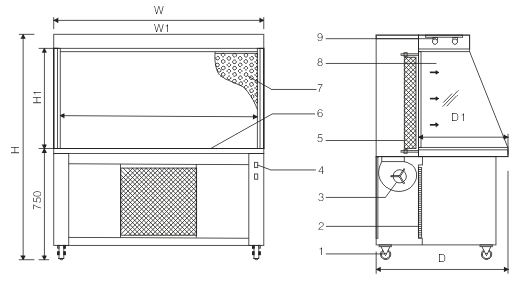 7.網(wǎng)孔散流板 8.玻璃